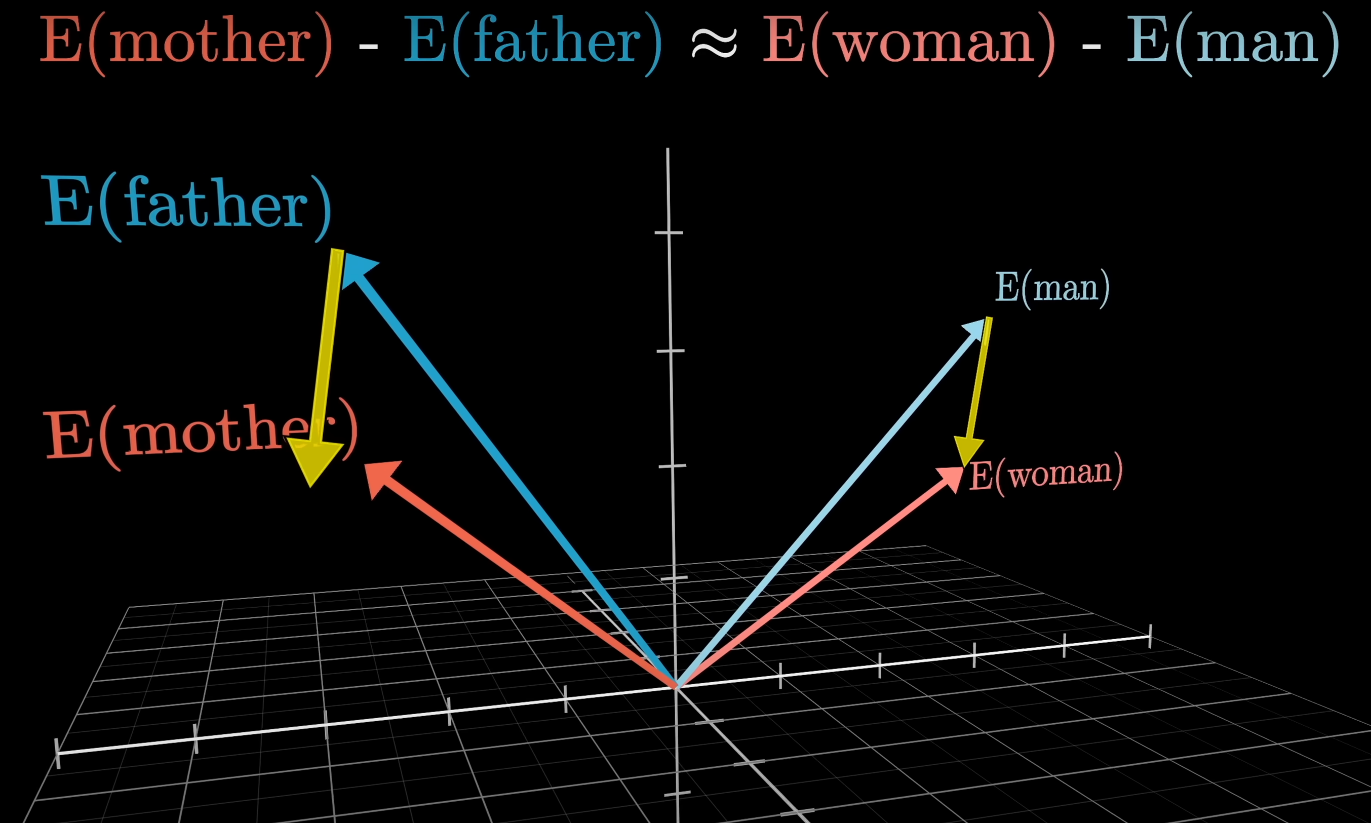 向量可以进行计算,父亲和母亲的距离,大致等于男人和女人