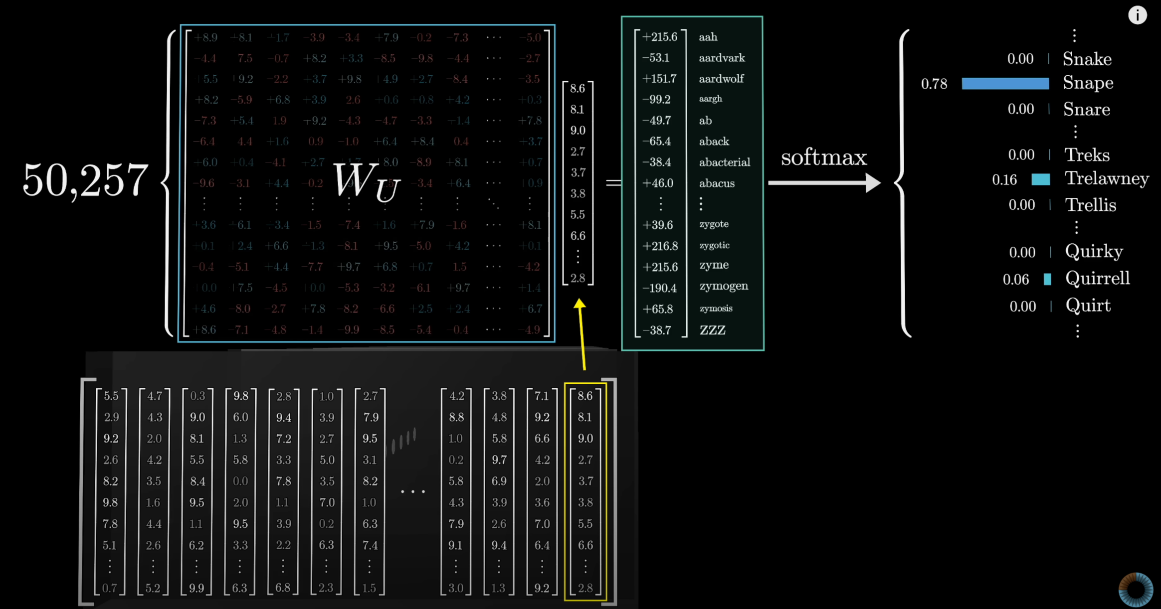 这个二维数组,外层数组的长度对应了 Token 词表的大小(GPT-3: 50257)