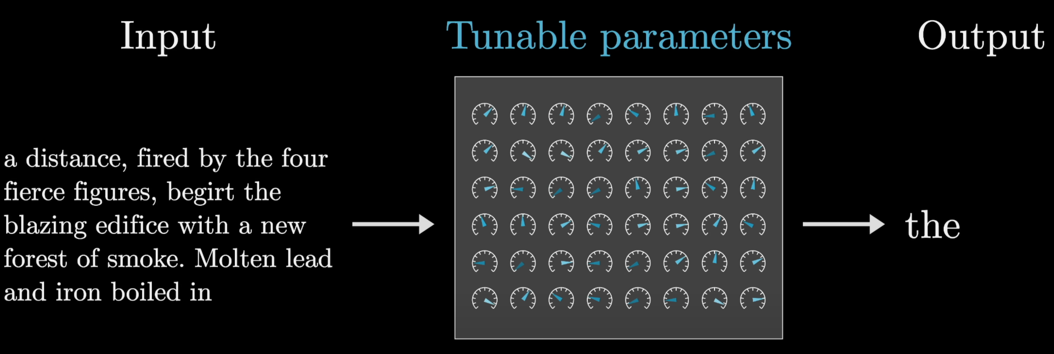 - 从海量的参数中,逐个 Token 的 预测/生成/回忆 第一章的内容